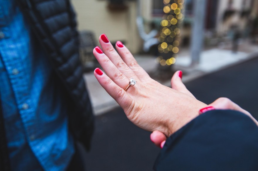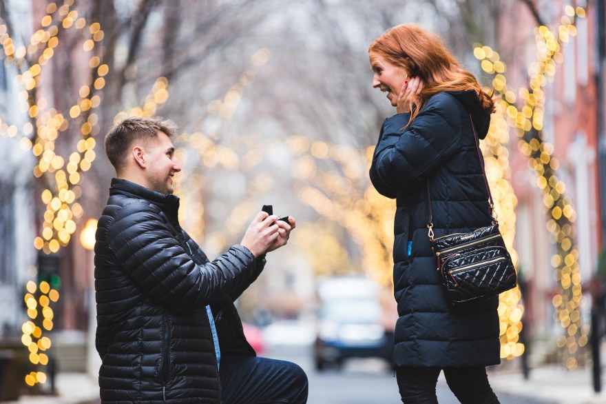 It was all planned out – we even met 2 days before to do a little walk-through on picture-perfect Addison Street of what would happen, what trees he’d stop at to kneel down…the whole thing. He managed to plan everything without Erin knowing, which was a feat because this girl is on it! Erin has an incredibly awesome and popular food blog and instagram called https://www.erinliveswhole.com/. Tom, in turn, has a parody account called “Tom lives full.”