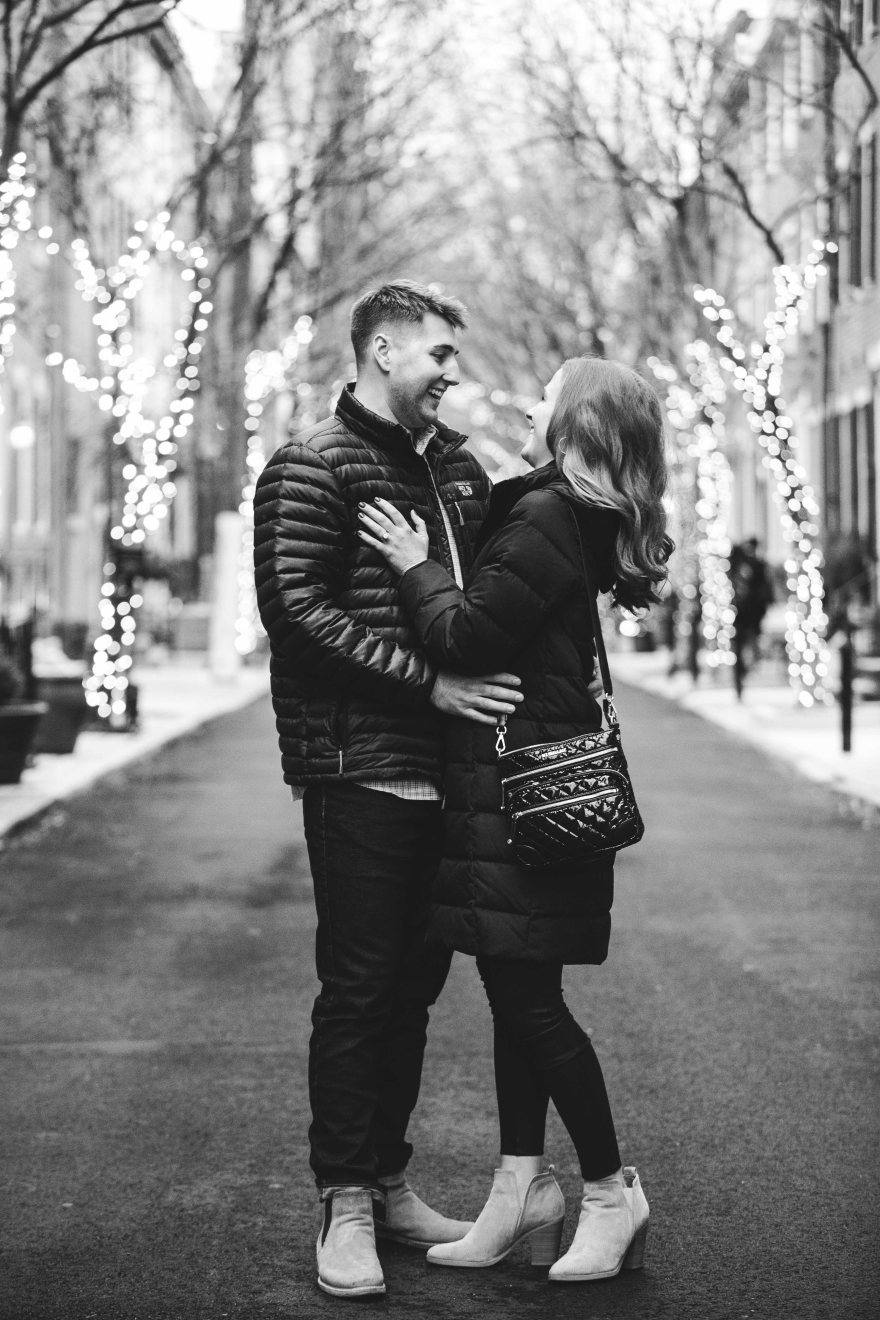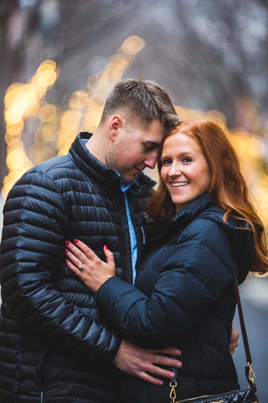 My heart was beating so fast as I kept looking toward the South entrance to city hall. With two huge lenses hanging from my side, I clearly had a purpose, but somehow kept getting in the way of all the folks trying to take their yearly selfies and portraits in front of the Christmas Tree. Another text……they were parked and now walking! I had my perfect shot all set-up, but a large group of tourists happen to step into my composition as Ryan and Meghan stepped through the South entrance to City Hall. They were SO cute. I suggested he take some deep breaths, chat a little while I move around upon their arrival. Ryan told me he had asked Meghan’s parents for permission…